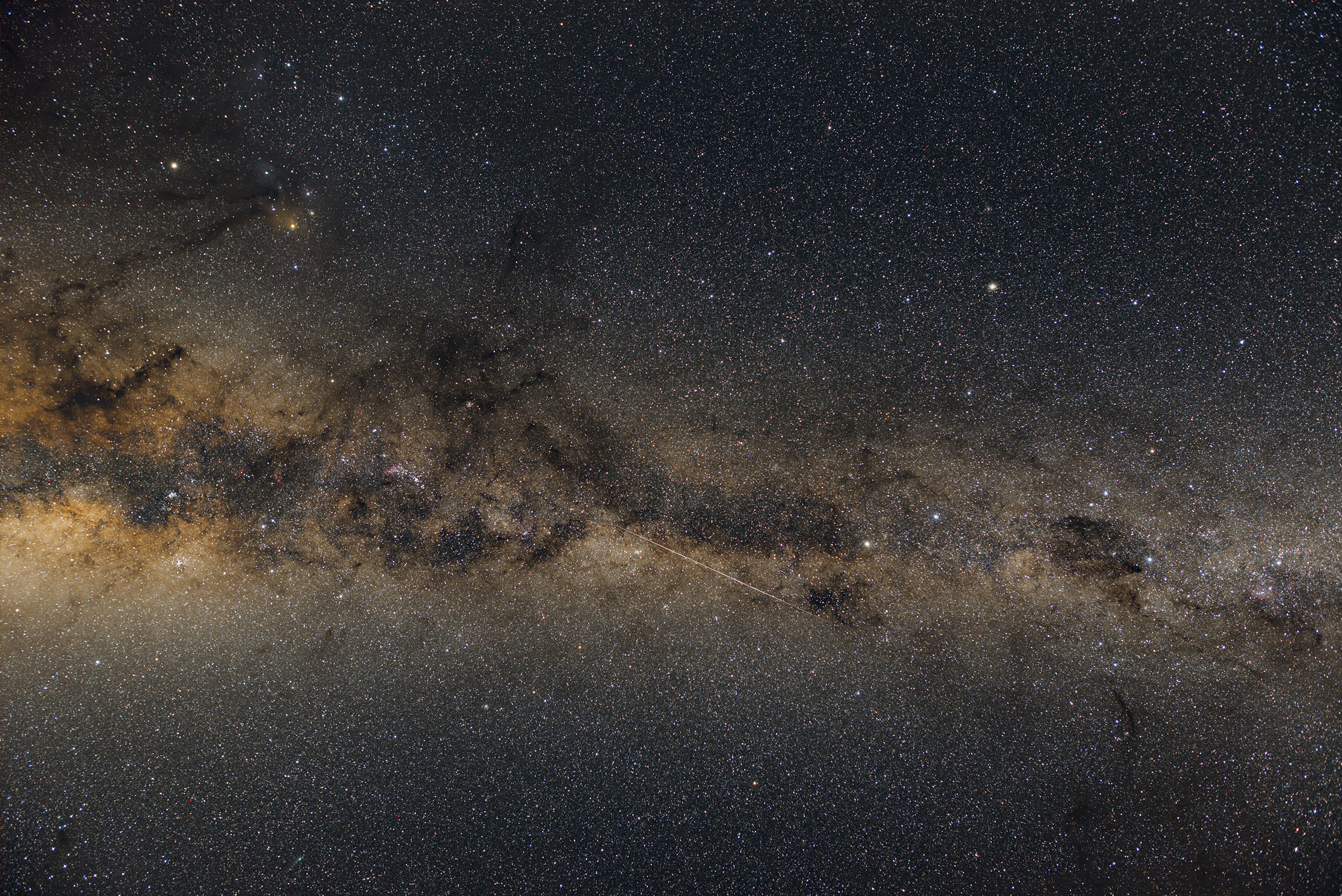 Milkyway in the Constellations of Scorpius, Centaurus, Norma, Lupus and Crux. A meteor hit the scene.
